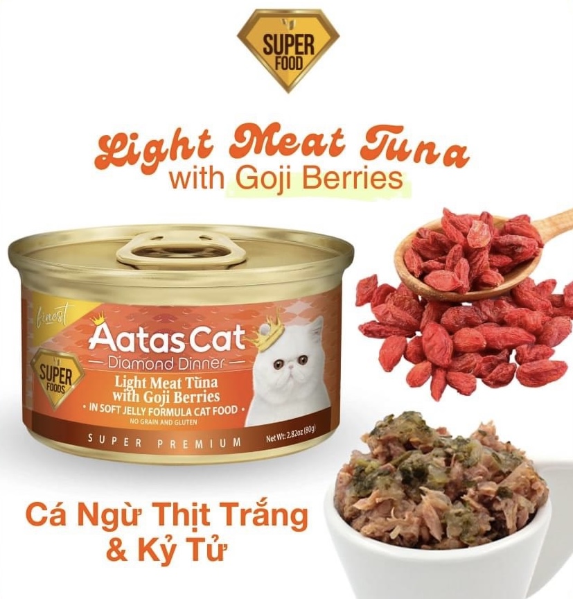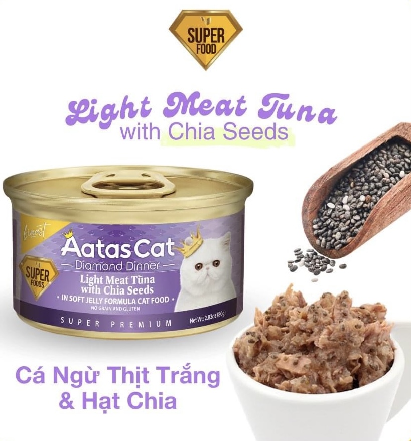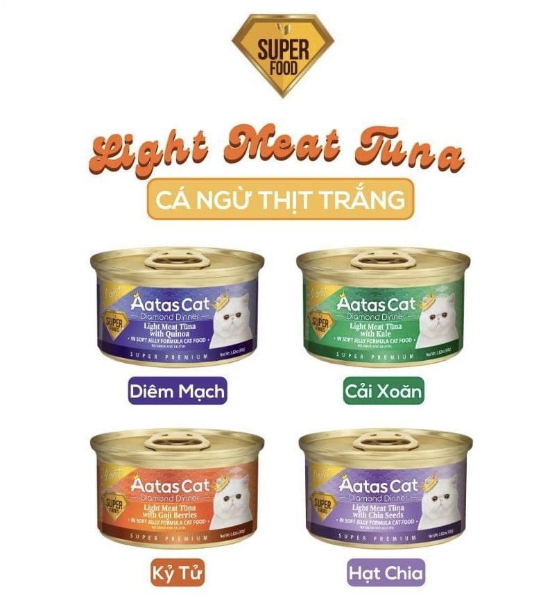 Pate mèo Aatas Cat Super Foods Light Meat Tuna với nhiều hương vị thơm ngon hấp dẫn dành cho mèo cưng của bạn.