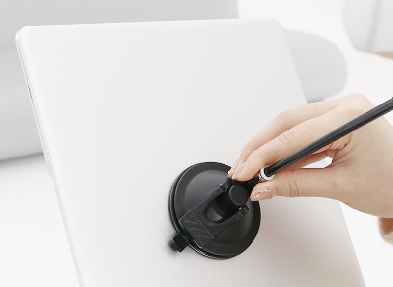 Đế dính dưới sàn sau đó ấn nút gạt cố định, sử dụng tốt nhất trên sàn đá, kính, gương, sàn trơn nhẵn,...