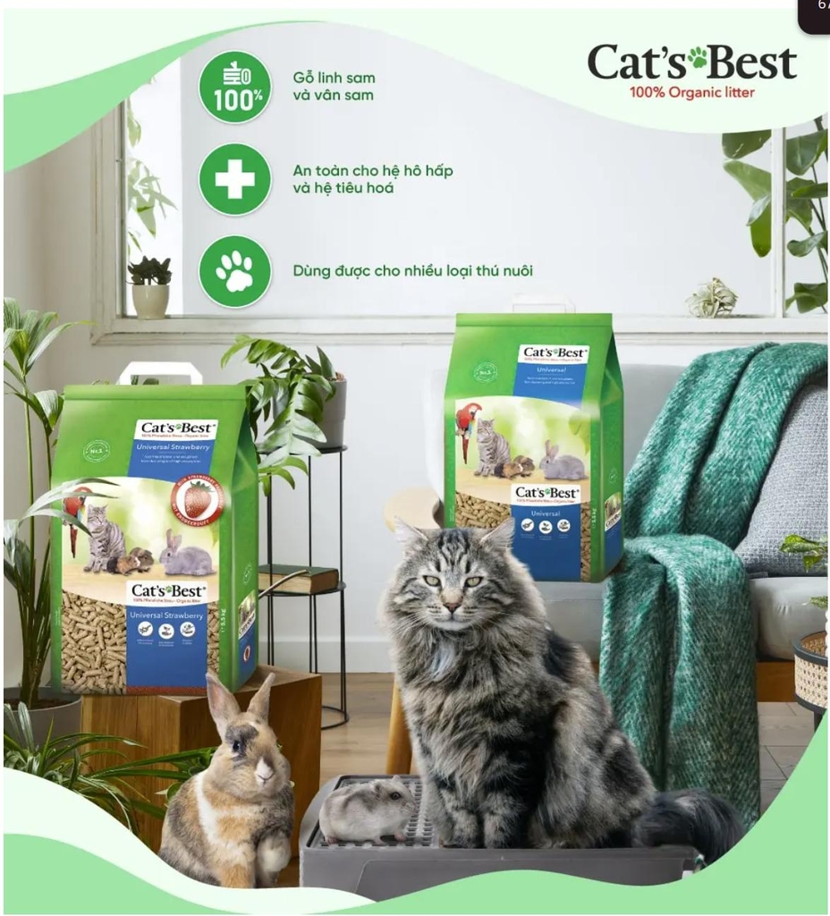 Cat’s Best Universal là dòng cát vệ sinh sinh học đa năng, phù hợp cho nhiều loại thú cưng khác nhau. Sản phẩm được làm từ 100% gỗ tự nhiên, an toàn cho thú nuôi, thân thiện với môi trường và tiện lợi trong quá trình sử dụng hằng ngày.