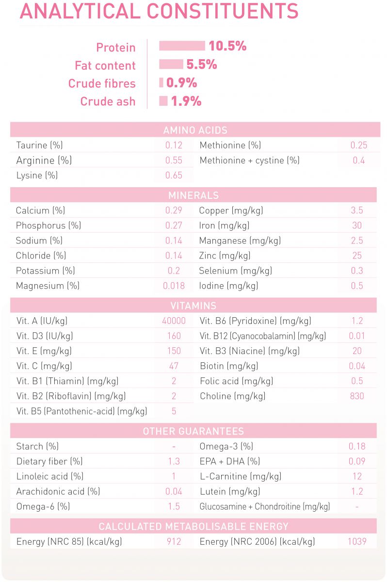 • Công thức phù hợp với nhu cầu dinh dưỡng tối ưu macronutritional theo bản năng của mèo con