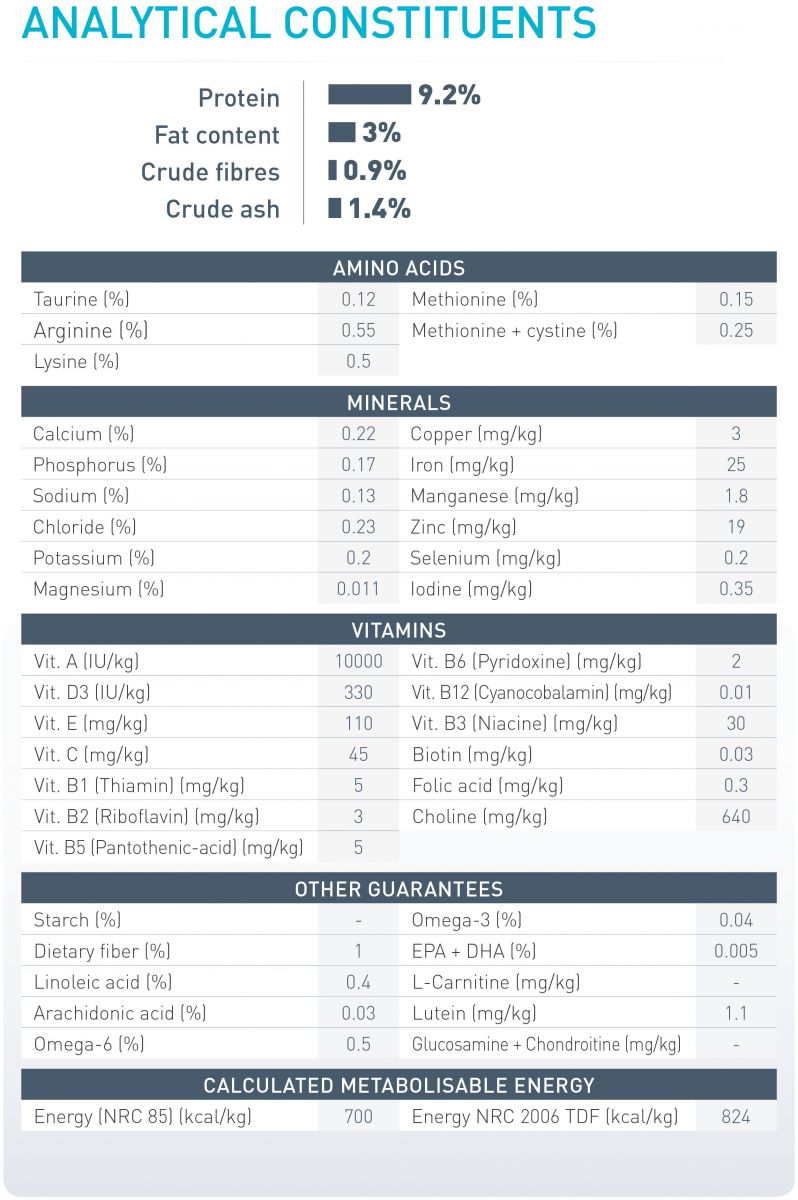 Các vấn đề về đường tiết niệu thường xuyên xảy ra ở những chú mèo thừa cân, vì vậy việc giúp mèo duy trì cân nặng khỏe mạnh góp phần quan trọng trong việc bảo vệ sức khỏe đường tiết niệu. Sản phẩm này chứa các thành phần dinh dưỡng được mèo trưởng thành ưa thích để tăng cảm giác ngon miệng và no bụng.