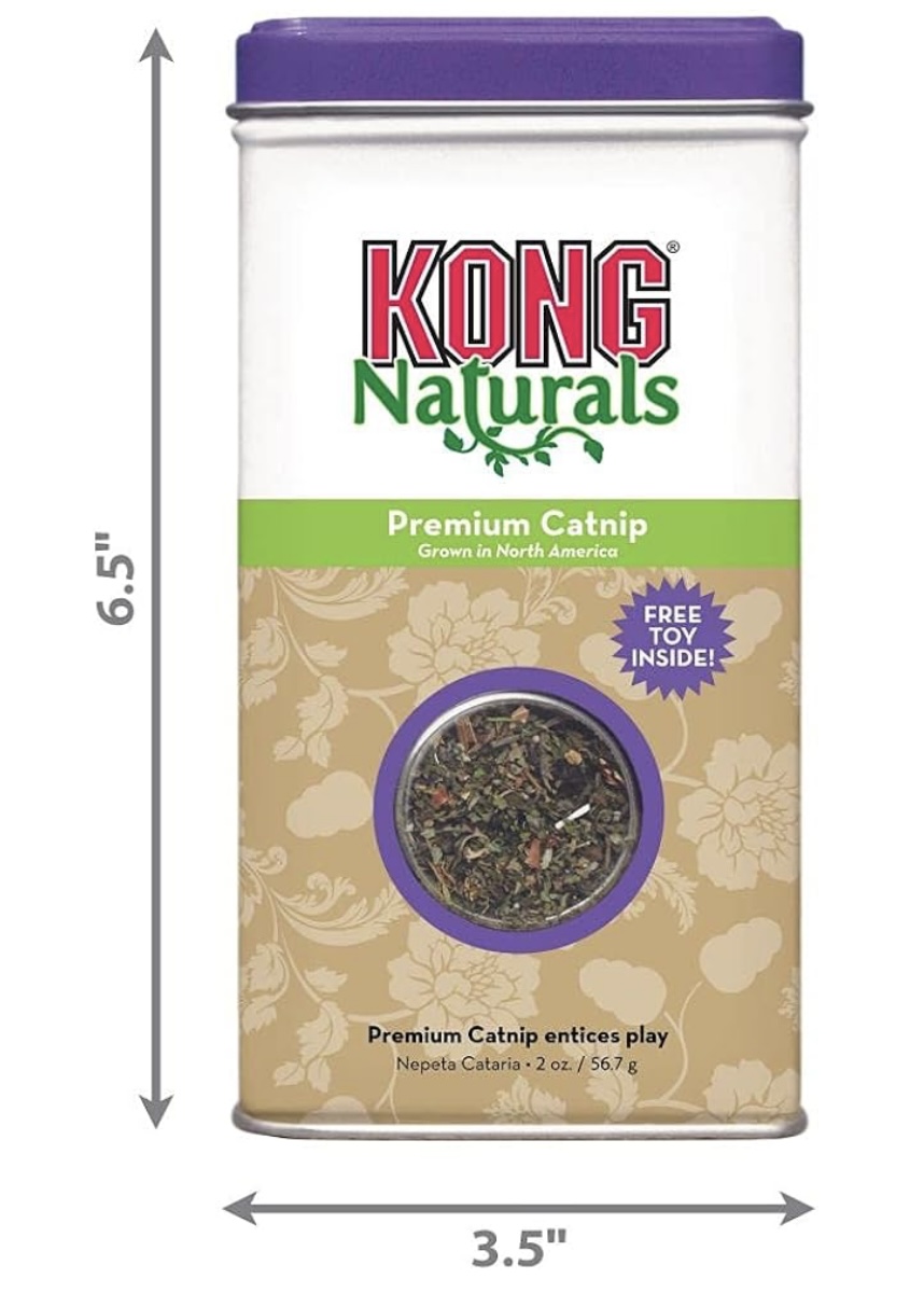KONG Naturals Premium North American Catnip luôn tươi mới trong một hộp thiếc cầm tay có nắp đậy tiện dụng. Sử dụng như một món ăn độc lập, để đổ đầy đồ chơi KONG và rắc lên đồ chơi và đồ cào để tạo chút hạnh phúc và khuyến khích hành vi cào thích hợp.