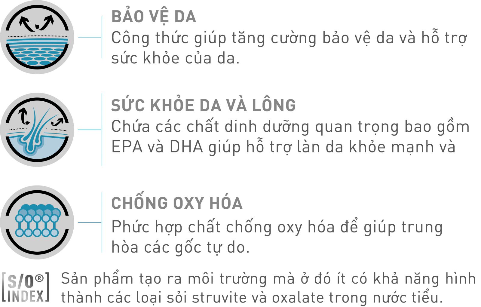 Thức ăn cho mèo có làn da nhạy cảm, hỗ trợ làn da khỏe mạnh và bộ lông sáng bóng.