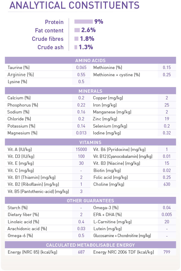 • Công thức với sự cân bằng chính xác các vitamin và khoáng chất để duy trì sức khỏe và chăm sóc tối ưu