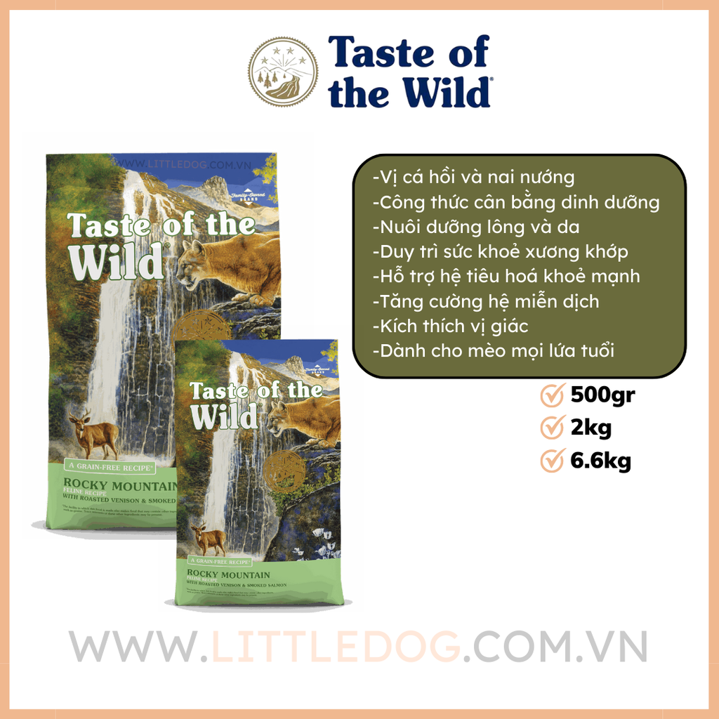 Với 42% protein, công thức này chứa nhiều năng lượng dễ tiêu hóa cho mèo ở mọi lứa tuổi. Sự kết hợp độc đáo giữa thịt nai nướng và cá hồi hun khói cung cấp cho mèo của bạn lượng protein thích hợp, rất quan trọng để có một cơ thể gầy và khỏe mạnh, trong khi các loại đậu, rau, trái cây và các thành phần được lựa chọn cẩn thận cung cấp cho chúng chất dinh dưỡng cân bằng theo dự định.