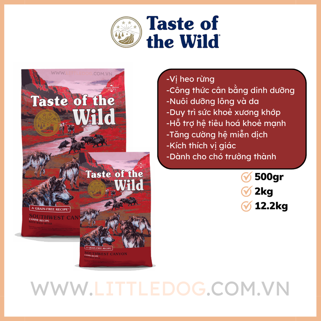Một loại protein thực sự độc đáo với hương vị thực sự độc đáo, thịt lợn rừng làm cho công thức này trở nên hoàn hảo cho những con chó khao khát một cái gì đó khác biệt. Ngoài ra, các loại đậu và trái cây giàu chất dinh dưỡng như đậu Hà Lan, đậu garbanzo, quả việt quất và quả mâm xôi cung cấp chất chống oxy hóa cho sức khỏe tổng thể và sức sống.