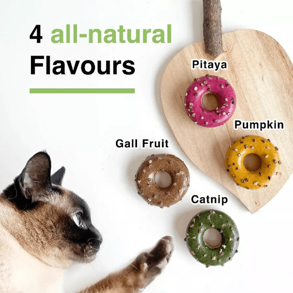 Silvervine Donuts – món quà đầy màu sắc và thú vị dành cho người bạn mèo của bạn! Những món đồ chơi thủ công này được làm từ các nguyên liệu tự nhiên, có bốn hương vị hấp dẫn: quả bầu nứa (silvervine gall fruit), cỏ mèo (catnip), thanh long (pitaya), và bí ngô (pumpkin). Được thiết kế để kích thích các giác quan và mang lại niềm vui bất tận, mỗi chiếc donut là một sự bổ sung độc đáo cho giờ chơi của mèo cưng.