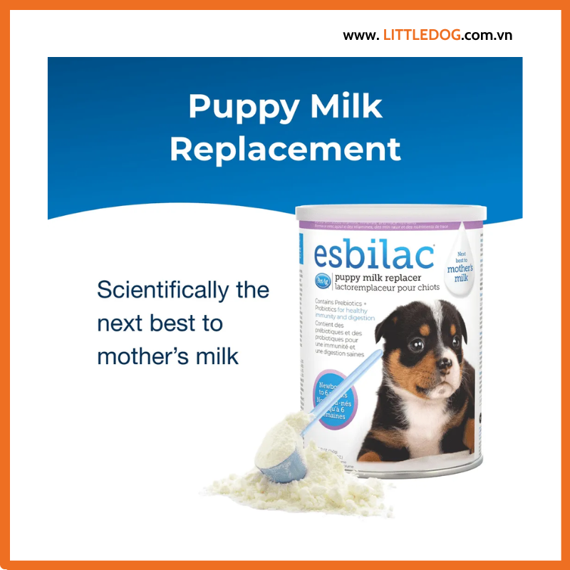 Khi chó mẹ không thể cho con bú, Esbilac® là lựa chọn thay thế hoàn hảo. Được nghiên cứu khoa học là loại sữa gần nhất với sữa mẹ tự nhiên, Esbilac® cung cấp đầy đủ các dưỡng chất thiết yếu cho chó con cần bổ sung dinh dưỡng, hoặc cho chó trưởng thành cần nguồn năng lượng dễ tiêu hóa.