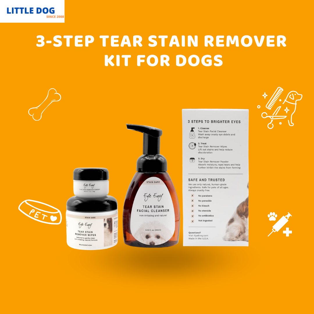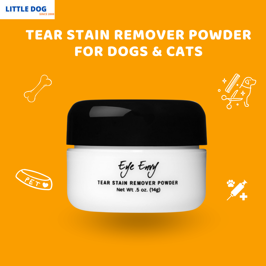 Đây chính là “ngôi sao” làm nên tên tuổi của Eye Envy. Vết nước mắt khiến lông quanh mắt chó mèo bị ố vàng, xỉn màu, vừa mất thẩm mỹ vừa có nguy cơ gây viêm nhiễm nếu không được vệ sinh đúng cách. Eye Envy đã nghiên cứu và cho ra đời bộ đôi giải pháp: dung dịch làm sạch Tear Stain Solution và phấn Tear Stain Powder.