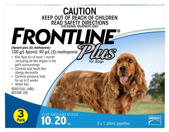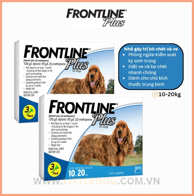 – Các nghiên cứu đã chứng minh rằng Frontline® Plus for dogs tiêu diệt được trứng, nhộng và bọ chét trưởng thành cho đến 3 tháng. Frontline® Plus for dogs tiêu diệt được ve ít nhất 1 tháng; và chỉ cần một lần sử dụng sẽ kiểm soát được ve nơi cần kiểm soát. Mặc dù Frontline® Plus có thể kiểm soát được bọ chét cho đến 3 tháng, nhưng nếu có nguy cơ tái nhiễm hay do bọ chét gây viêm da dị ứng thì có thể lặp lại mỗi tháng.