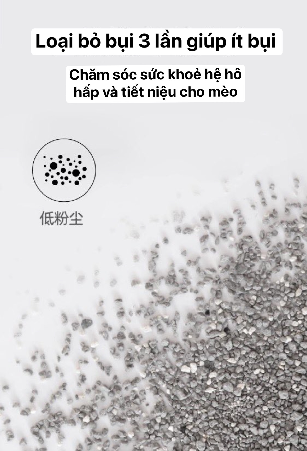 Cát vệ sinh được xử lý để giảm thiểu bụi, giúp bảo vệ hệ hô hấp của mèo và không gây khó chịu khi sử dụng.