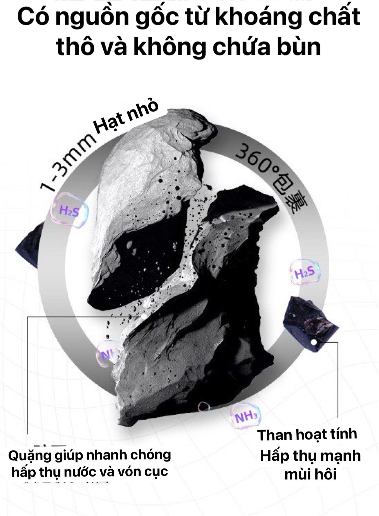 Than hoạt tính trong cát có khả năng hấp thụ và loại bỏ mùi hôi hiệu quả, giúp giữ cho không gian sống luôn sạch sẽ, thoáng mát.