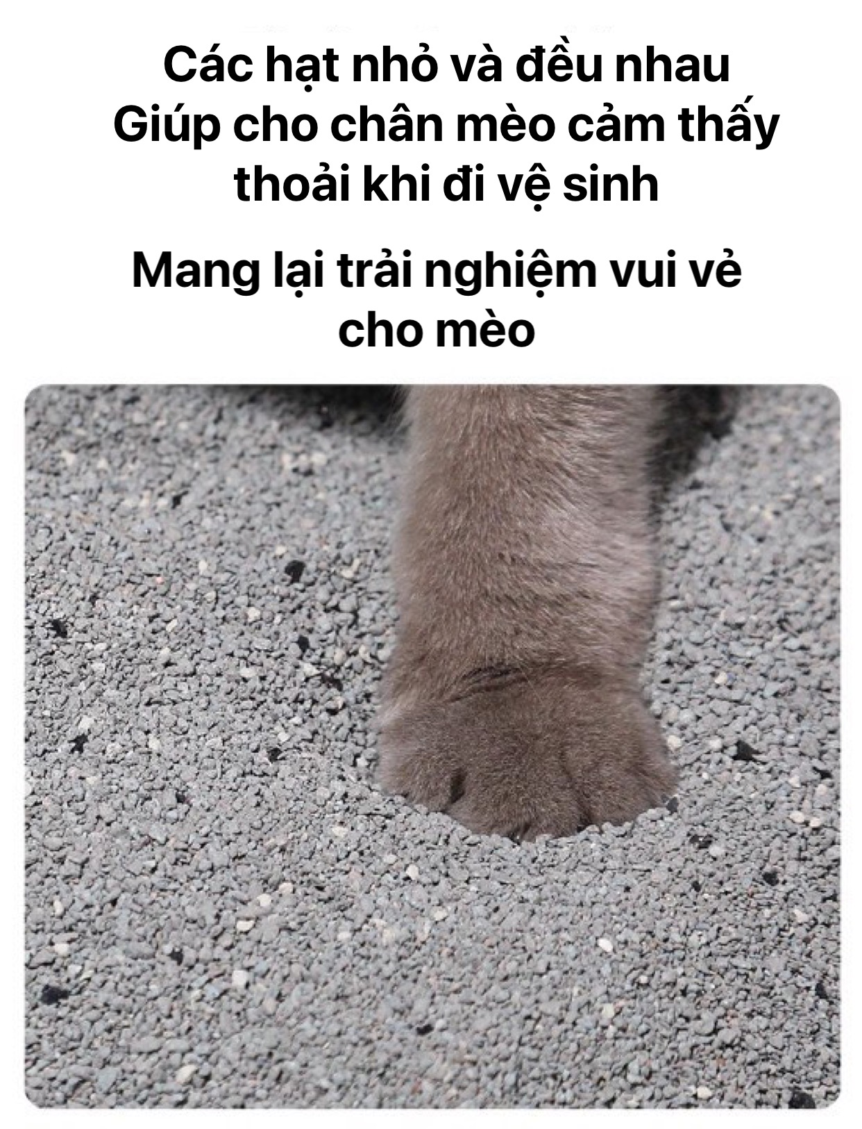 Kích thước hạt cát vừa phải, không bám dính vào chân mèo, giúp mèo thoải mái khi di chuyển.