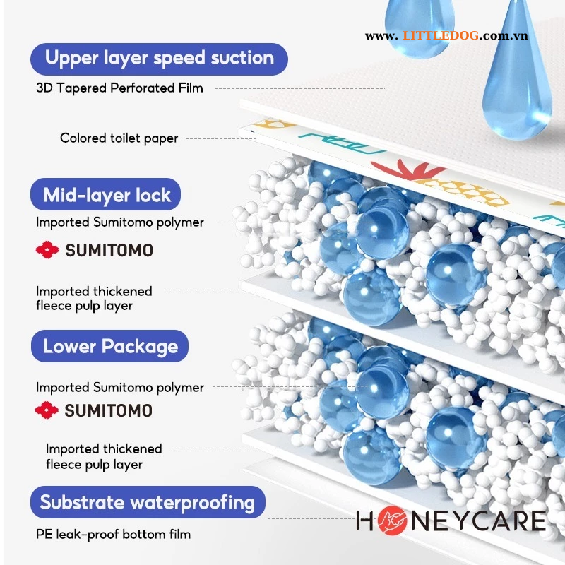 Khả Năng Thấm Hút Cao: Sản phẩm sử dụng lõi thấm hút mạnh mẽ với chất liệu polymer hấp thụ cao cấp từ Nhật Bản. Miếng lót có khả năng hấp thụ nước tiểu ngay lập tức và giữ lại lâu dài, giúp bề mặt luôn khô ráo, không thấm ngược trở lại.