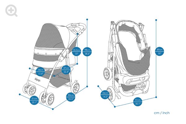 Stroller Dimension: L51 W85 H98 (cm); L20 W33.5 H39 (in)