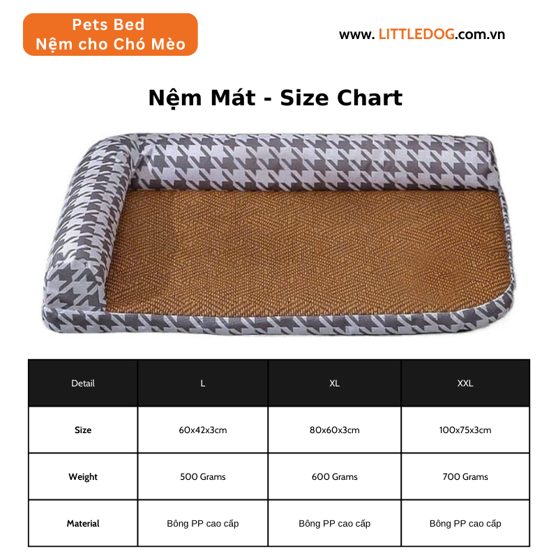 - Chất Liệu Mềm Mại & Thoáng Khí: Được làm từ vải mát mẻ, nệm mang đến sự thoải mái tối đa, giúp điều chỉnh nhiệt độ cơ thể của thú cưng và ngăn ngừa sự ngột ngạt khi ngủ.