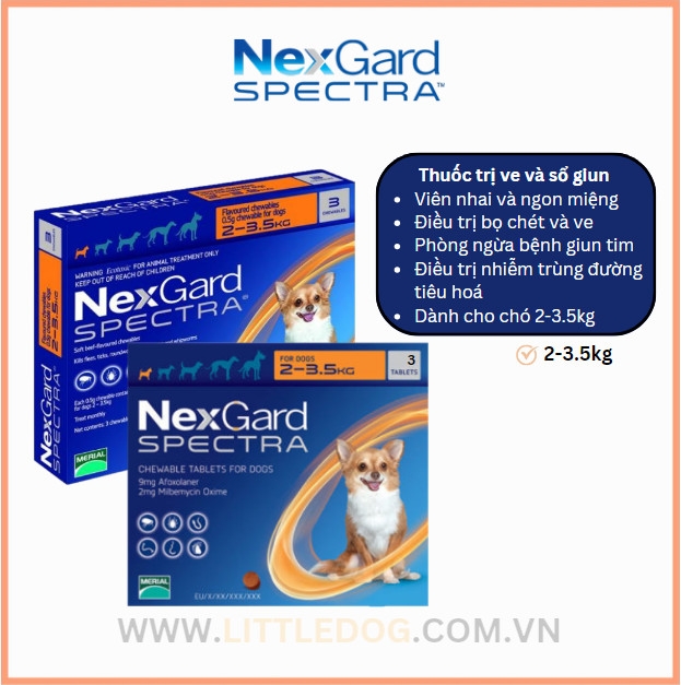 + Phòng bệnh giun tim rất quan trọng. Để giảm nguy cơ kháng thuốc, khuyến cáo nên kiểm tra kháng nguyên lưu hành và ấu trùng giun tim microfilariae trong máu ở chó trước khi bắt đầu mùa phòng trị bệnh. Chỉ điều trị trên chó có kết quả âm tính. NexGard Spectra không chỉ định diệt ấu trùng giun tim microfilariae trên chó dương tính.