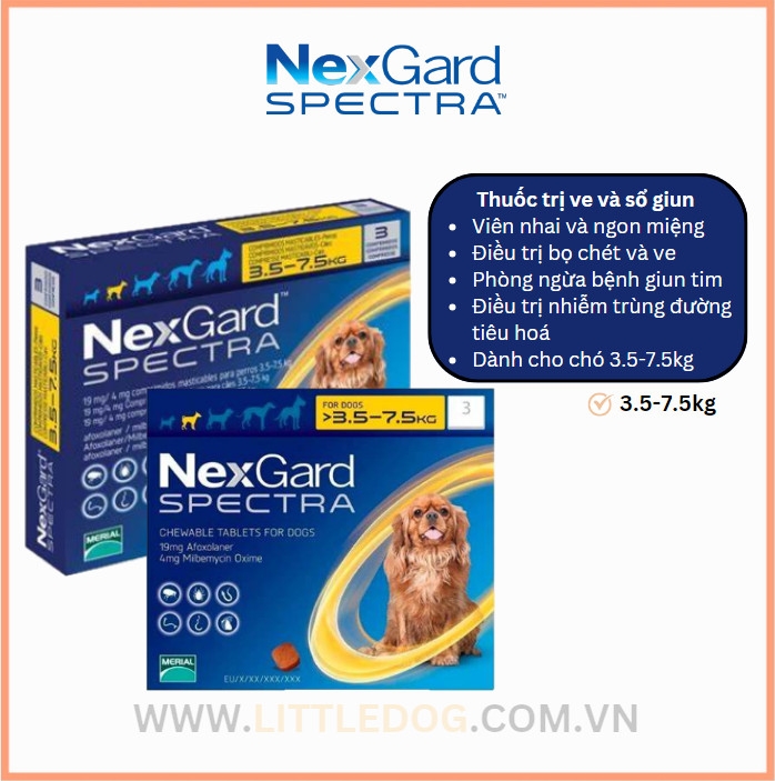 + Phòng bệnh giun tim rất quan trọng. Để giảm nguy cơ kháng thuốc, khuyến cáo nên kiểm tra kháng nguyên lưu hành và ấu trùng giun tim microfilariae trong máu ở chó trước khi bắt đầu mùa phòng trị bệnh. Chỉ điều trị trên chó có kết quả âm tính. NexGard Spectra không chỉ định diệt ấu trùng giun tim microfilariae trên chó dương tính.