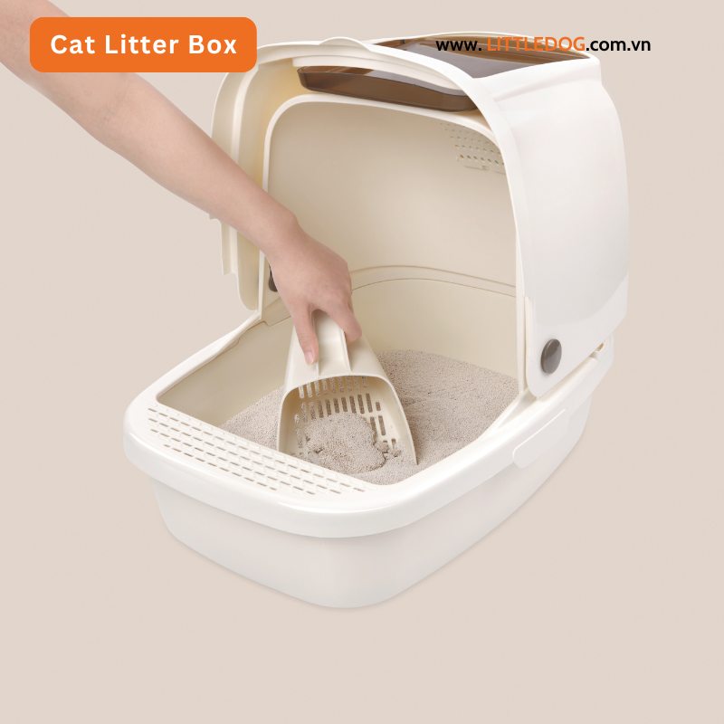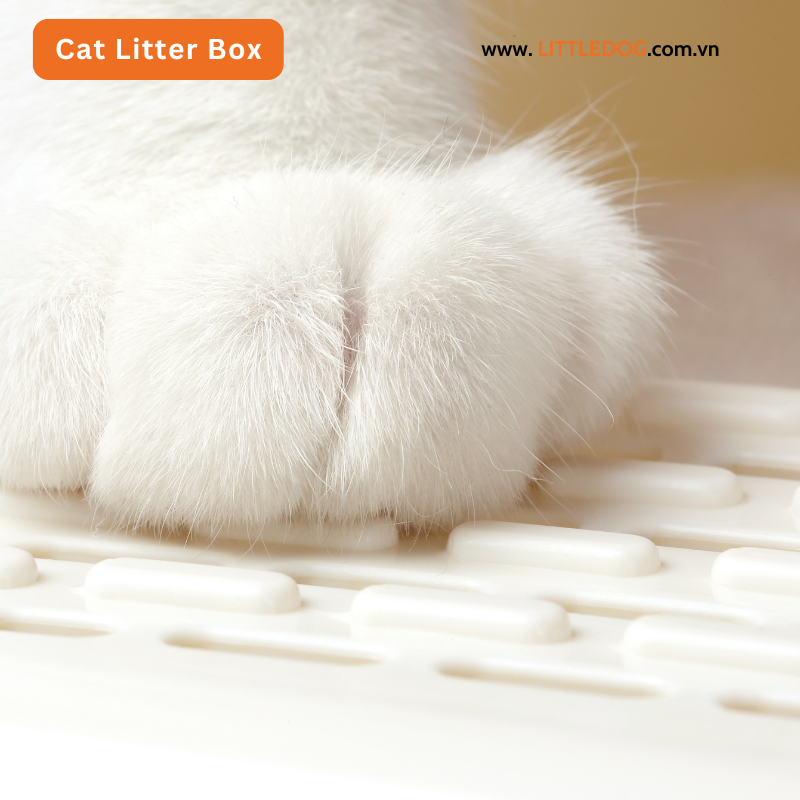 Kích thước rộng thoáng để mèo thoải mái xoay, đào cát và đi vệ sinh.