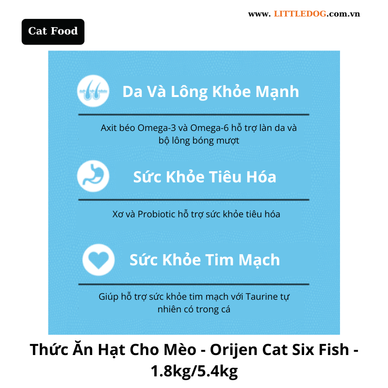 - ORIJEN Six Fish hỗ trợ nhu cầu của mèo với lượng đạm cao và chất dinh dưỡng bổ dưỡng nhất.