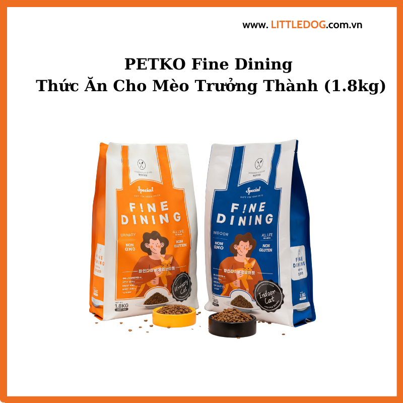 PETKO Fine Dining là dòng thức ăn cao cấp đến từ Hàn Quốc, được nghiên cứu và sản xuất bởi FARMSCO – mang đến trải nghiệm “ẩm thực 5 sao” dành riêng cho mèo cưng.