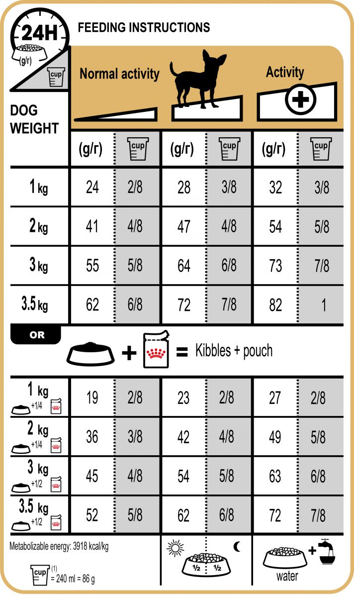 Giống chó Chihuahua khá kén ăn, chính vì vậy CHIHUAHUA ADULT được nghiên cứu nhằm đáp ứng nhu cầu khẩu vị nhờ vào sự kết hợp của 3 yếu tố: kích thước và hình dáng hạt đặc biệt, công thức chế biến ưu việt và nguyên liệu cùng hương vị được lựa chọn cẩn thận.