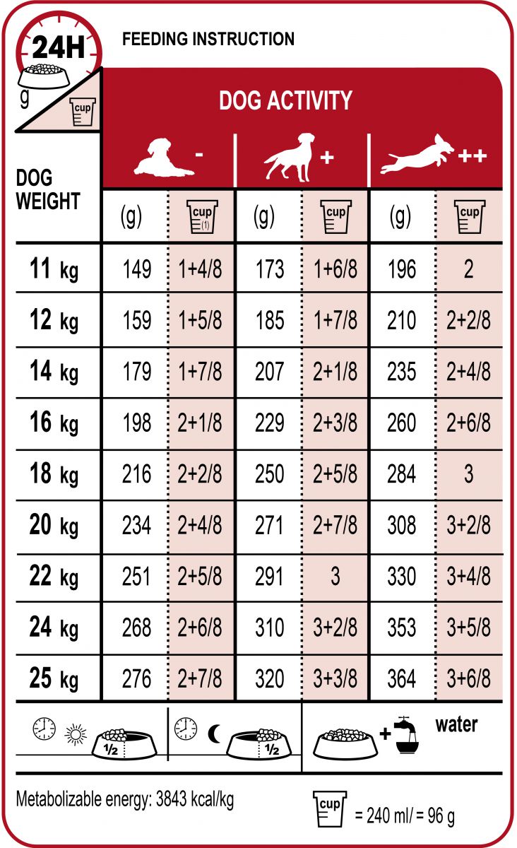 Những giống chó size Medium được biết đến có nguồn năng lượng dồi dào vì đa số giống chó này được sử dụng hỗ trợ trong các công việc của con người từ rất lâu. Cho dù giống chó size Medium này được nuôi trong nhà hay dành thời gian hoạt động ngoài trời, với ROYAL CANIN Medium Adult sẽ giúp giống chó này duy trì khả năng phòng thủ tự nhiên trong suốt vòng đời của chúng, đồng thời cung cấp năng lượng cân bằng cho giống chó này giúp duy trì trọng lượng khỏe mạnh.