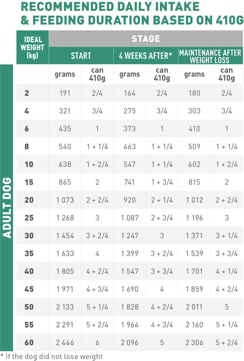 Thức ăn ướt được nghiên cứu để hỗ trợ quá trình giảm cân an toàn ở những chú chó thừa cân và béo phì. Hiệu quả đã được chứng mình tại một thử nghiệm lâm sàng , 97% những chú chó tham gia giảm cân thành công trong 3 tháng và kiểm soát được hành vi xin ăn ở 83% số chó.