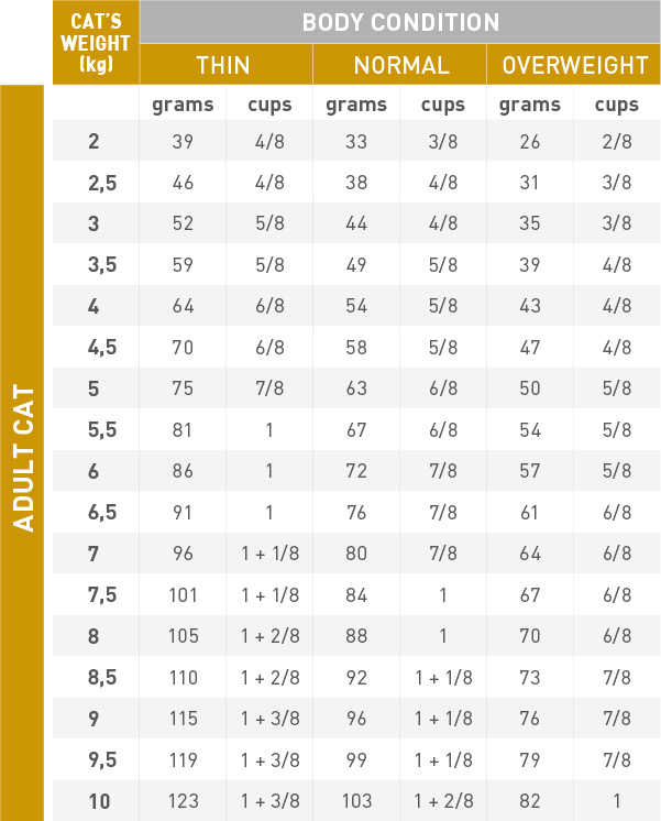 Gạo, gluten lúa mì*, protein gia cầm, bột bắp, chất béo động vật, protein động vật, gluten bắp, khoáng chất, xơ thực vật, dầu cá, dầu đận nành, fructo-oligo-sacarit, chiết xuất cúc vạn thọ (nguồn lutein).