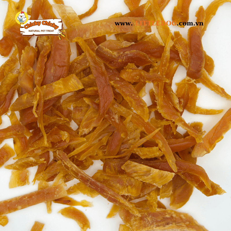 Sản phẩm được sấy khô tự nhiên, không chất bảo quản, không phẩm màu nhân tạo, giữ trọn hương vị thơm ngon và giá trị dinh dưỡng. Gà lát mềm, dễ bẻ nhỏ, rất tiện lợi khi huấn luyện hoặc mang theo trong các buổi đi dạo, du lịch cùng thú cưng.