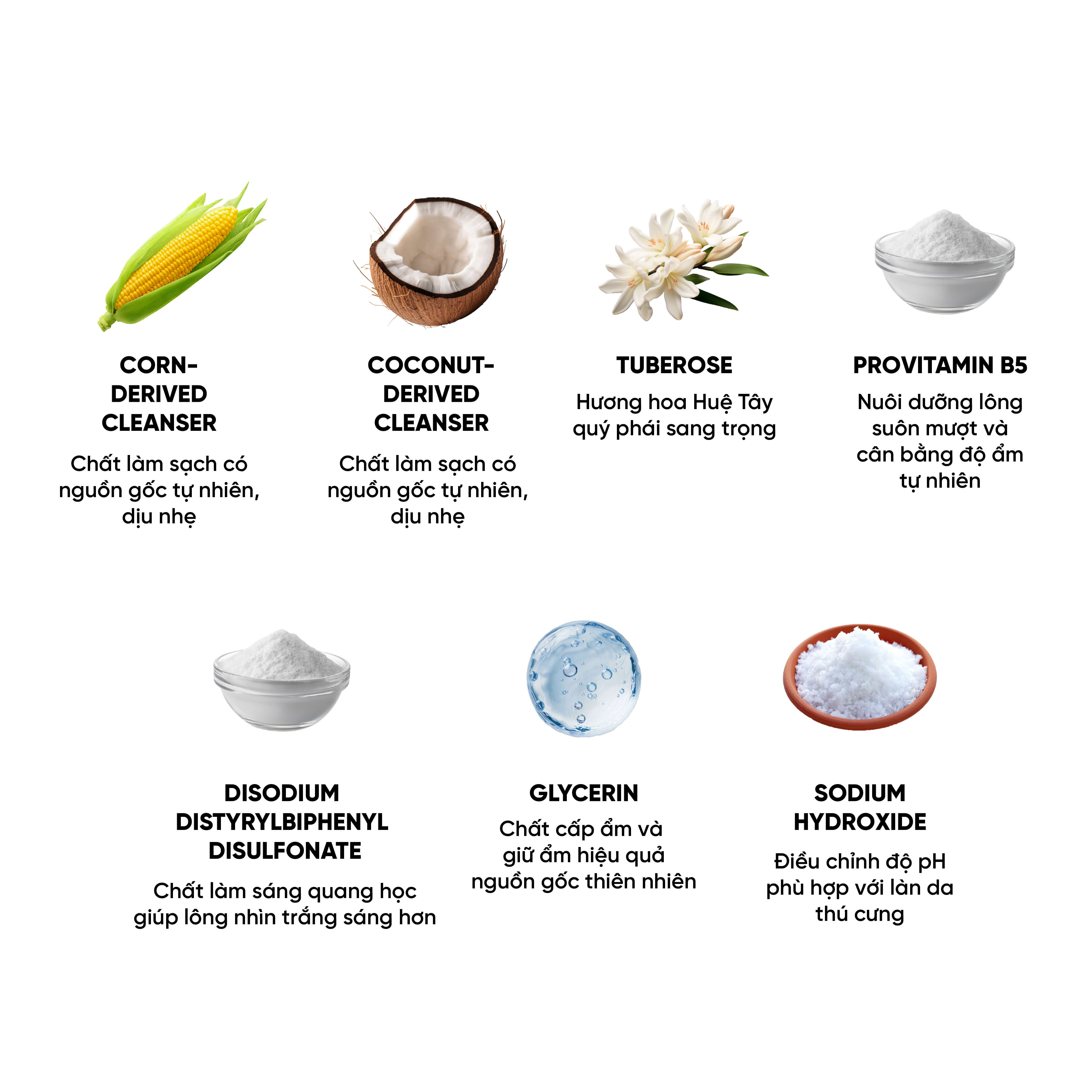 Làm sạch sâu, khử mùi và giúp lông trắng sáng tự nhiên.