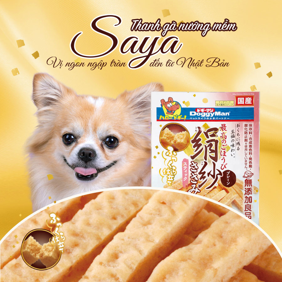 Là một trong những dòng snack bán chạy nhất, Thanh gà nướng mềm SAYA được sản xuất trực tiếp tại nhà máy DoggyMan Japan (Fukuoka) – bảo chứng cho chất lượng và độ an toàn.