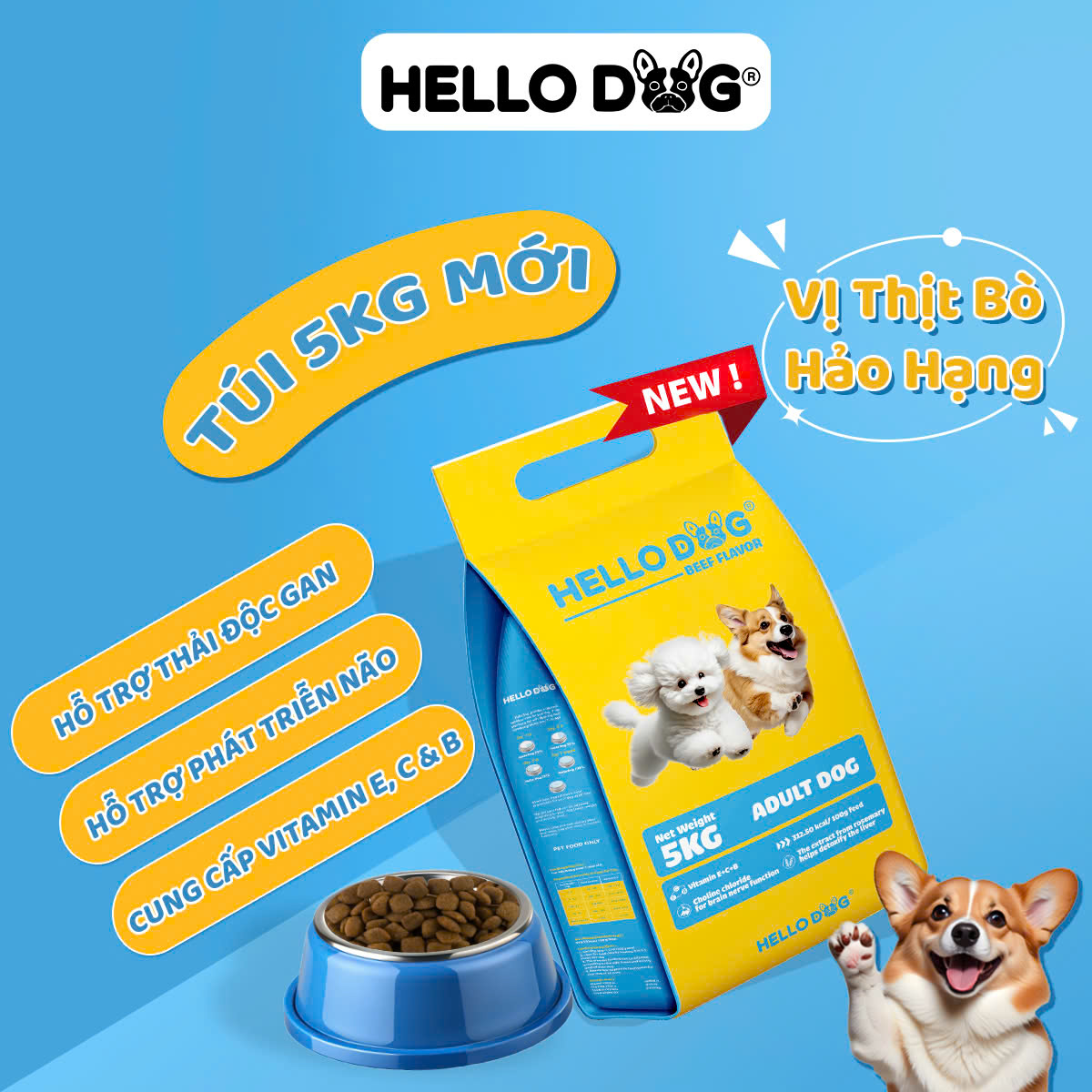 Thức Ăn Hạt Cho Chó Trưởng Thành - HelloDog - Vị Thịt Bò - 5kg
